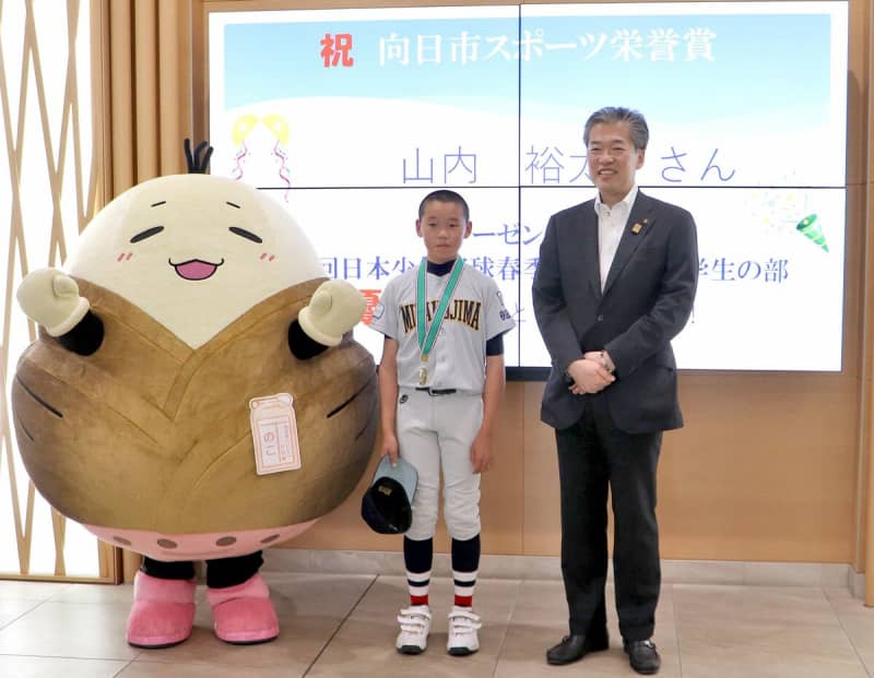 3月に東京都で開かれた小中学生硬式野球全国大会で優勝したチームで活躍した勝山中1年、山内裕太さん(12)=京都府向日市=が、市スポーツ栄誉賞を受賞した。市役所で表彰式があった。