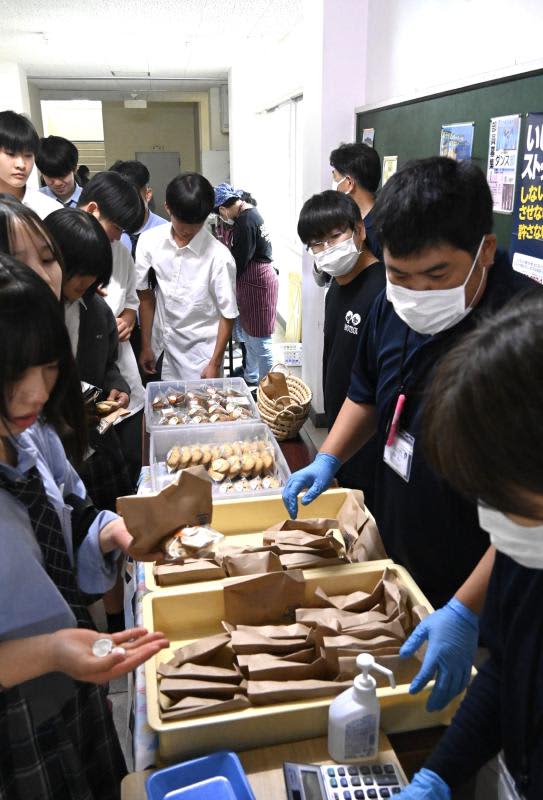 同作業所の職員と利用者が昼休みに同校を訪れ、クッキー、ドーナツ、シフォンケーキの3種類を各200円で販売。生徒たちの反応も上々で、販売開始とともに行列ができた。同作業所によると、持ち込んだ商品の約8割が売れたという。