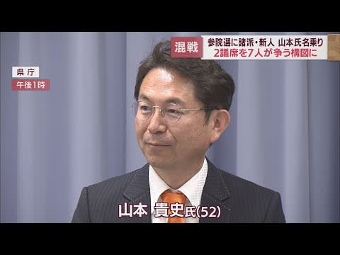 出馬を表明したのは、経営コンサルタントで諸派の新人、山本貴史氏(52)です。静岡・袋井市議会と静岡県議会で議員経験がある山本氏は、新しい政治団体・参政党の思いや理念を一人でも多くの人に知ってもらいたいと目標を話しました。